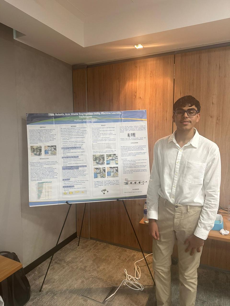 I have developed a working robotic arm prototype that uses AI and machine learning to segregate waste materials. This project, which won first prize at the Science Fair and was presented at COP28 last December, focuses on recycling technology.